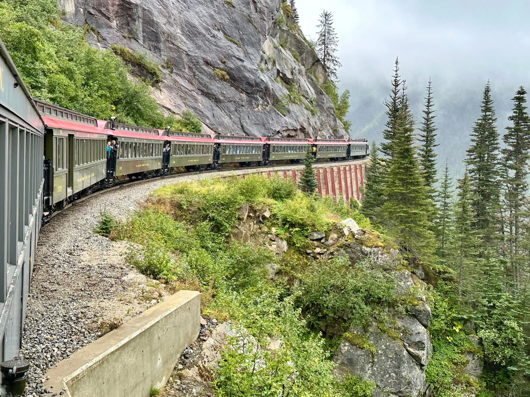 For the journey back, we swapped our motorcoach for the White Pass & Yukon Route Railroad, and wow—what a way to take in the scenery! This narrow-gauge railway is an engineering marvel, climbing nearly 3,000 feet over 20 miles of steep grades and cliff-hanging turns. It’s hard to imagine that this railway was built back in 1898, cutting through some of the most rugged landscapes of the North.