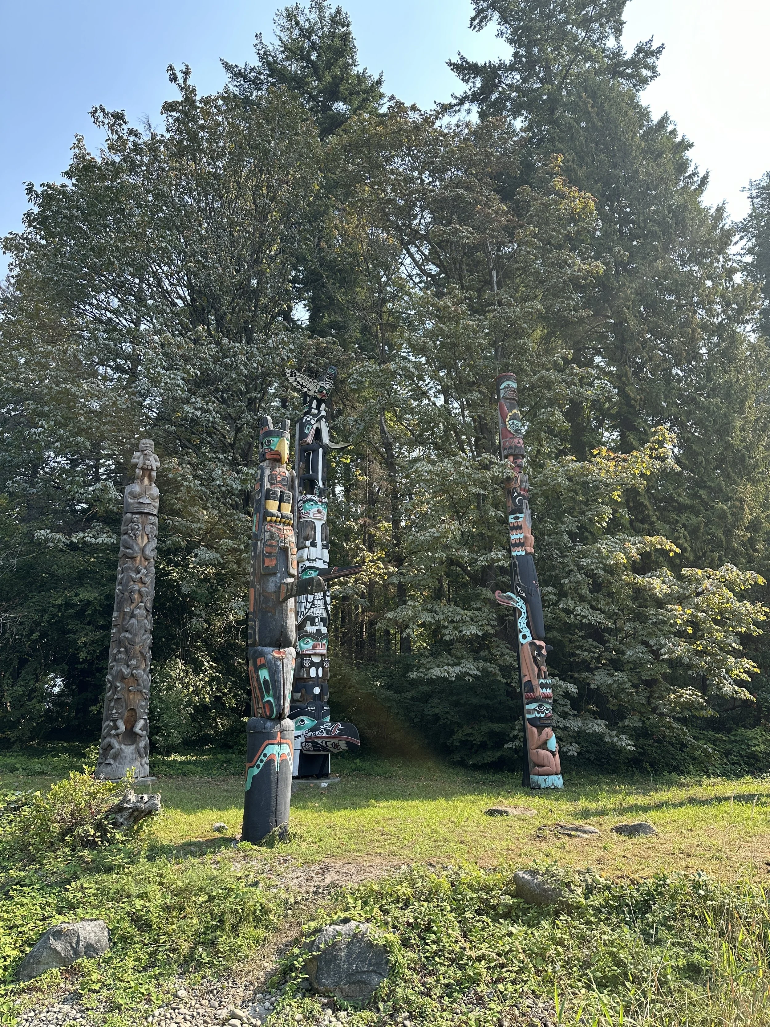 Our first day started with a visit to Stanley Park, a 1,000-acre urban oasis known for its stunning views, lush greenery, and scenic walking paths. We took the seawall trail, which led us to some incredible lookout points, with views of the city skyline, mountains, and Pacific Ocean. Stanley Park is also dotted with totem poles, a beautiful reminder of the city’s Indigenous heritage.