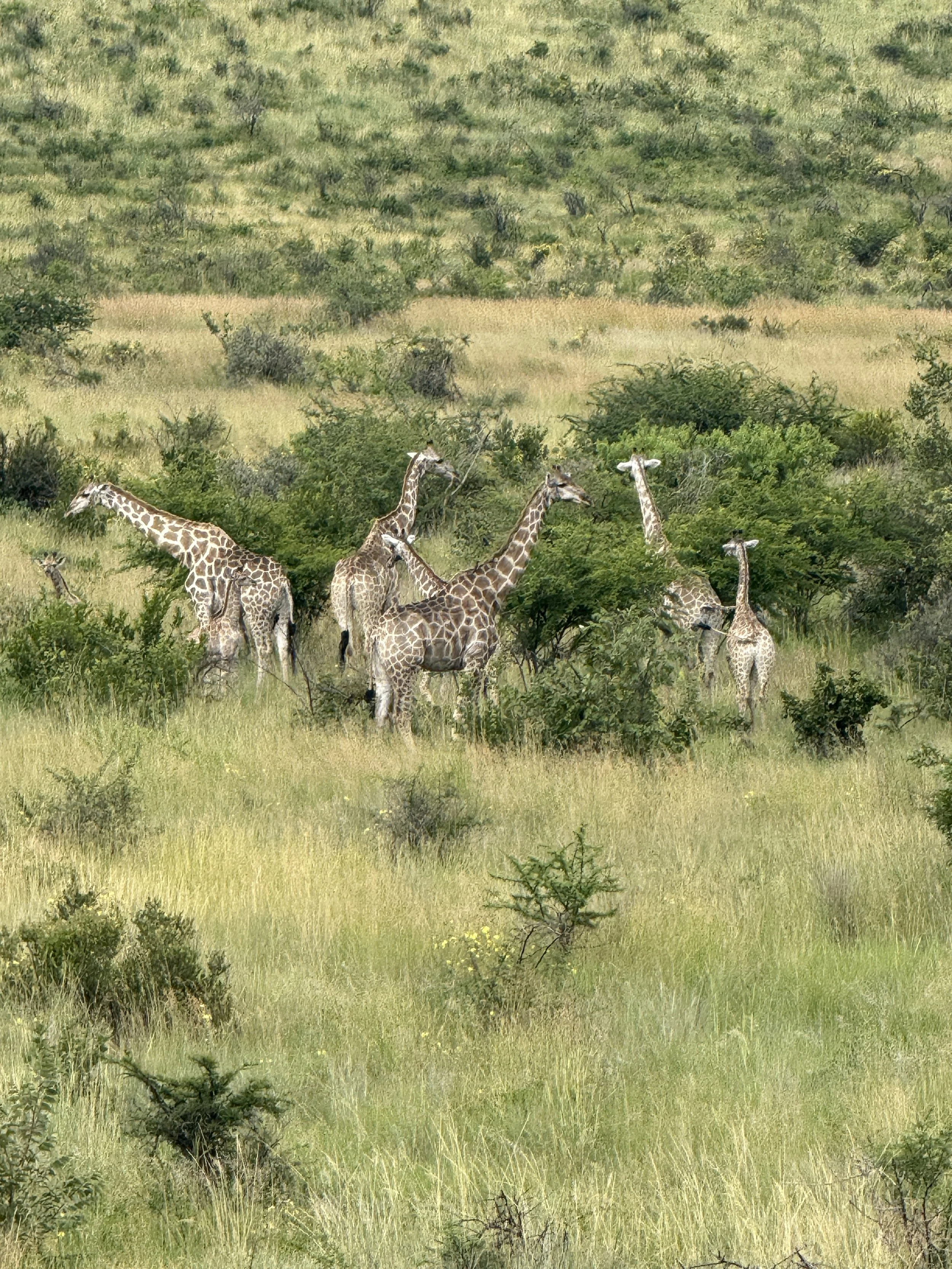 Arriving around 8:30 AM, we transferred to our open jeeps (different to those at Sebatana) and met our local guides. The adventure began quickly as we spotted giraffes and a white rhino. Soon after, we were alerted to a leopard sighting—one of the rarest and most elusive of the Big Five. The leopard was perched high in a tree, relaxing in the early morning heat. Thanks to someone’s binoculars, we got a good look.