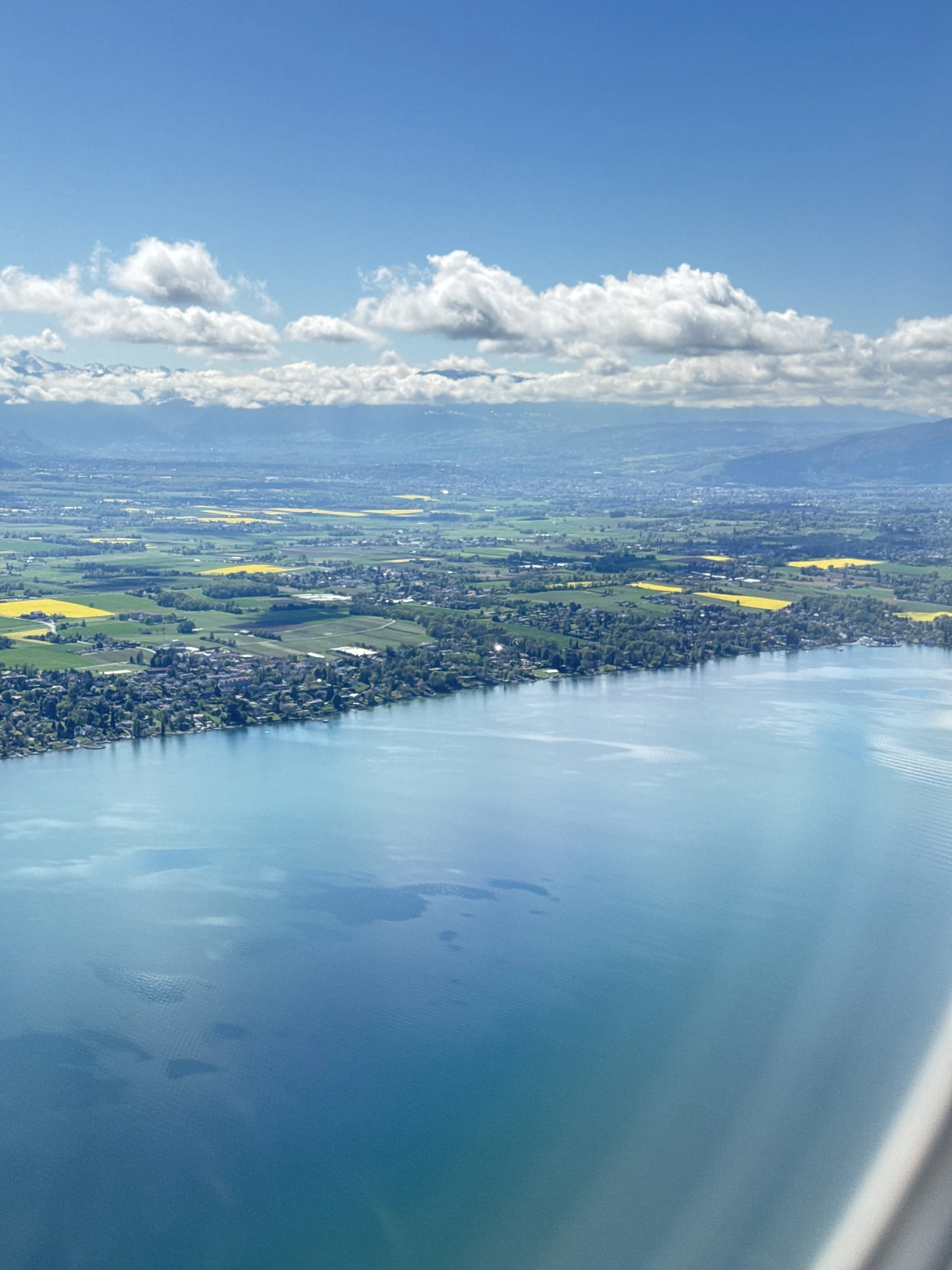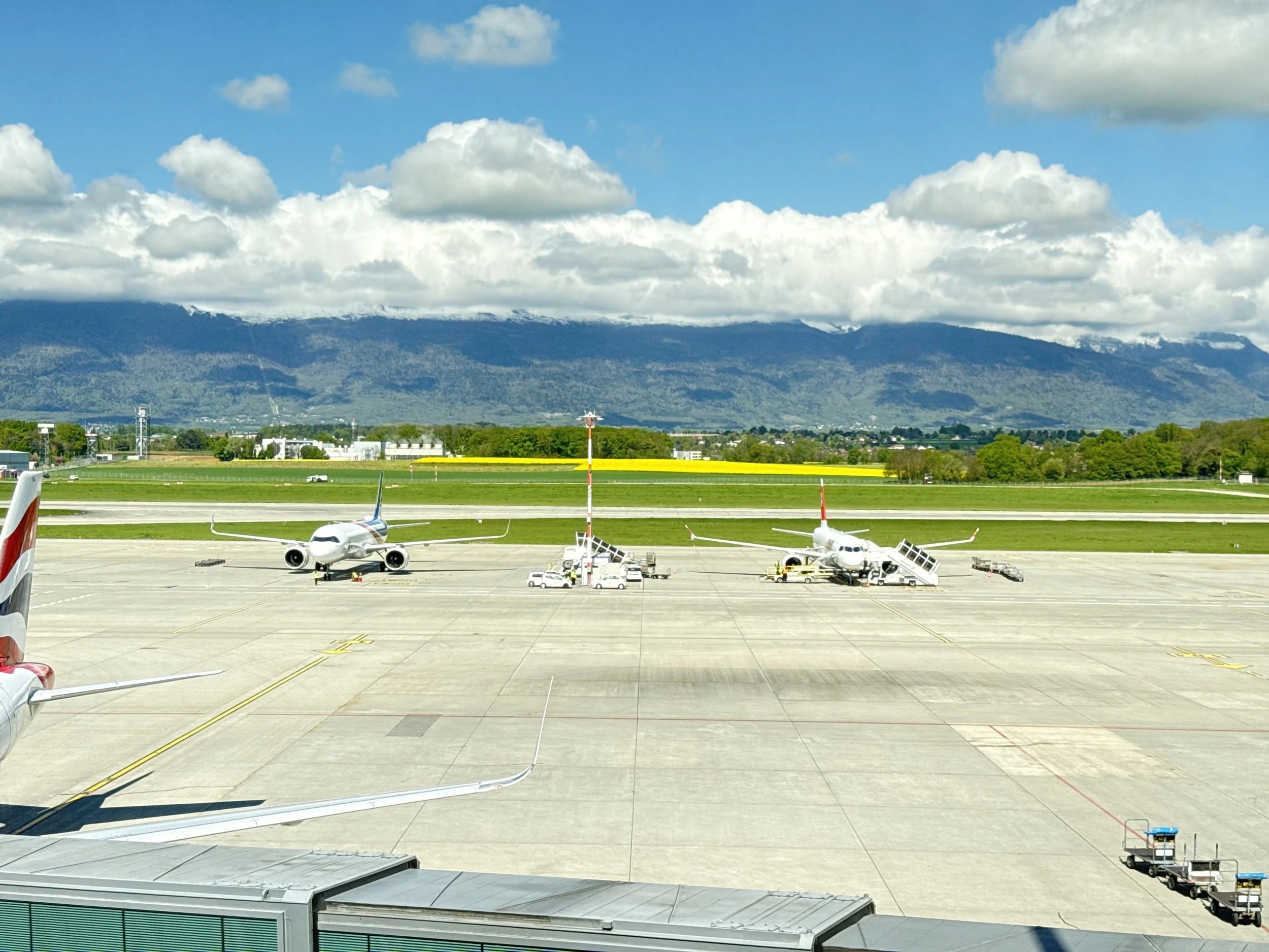 We flew from Manchester Airport to Geneva, and honestly, I was blown away by how gorgeous the approach into Geneva is. Mountains, lakes, and crystal-clear skies – a picture-perfect welcome to Switzerland and my first time in the country. Even queuing at passport control offered views worth stopping for.