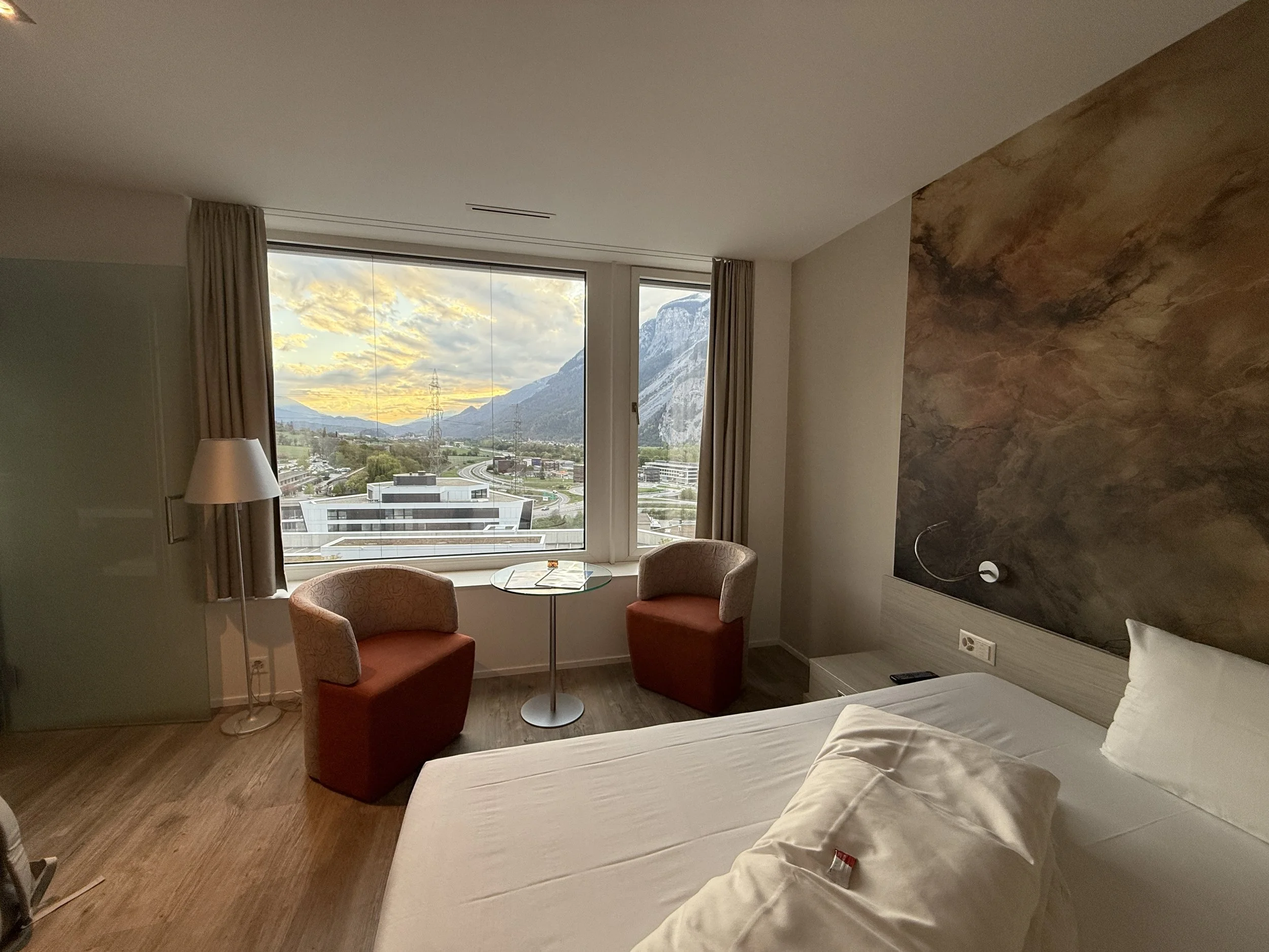 After arriving in Chur, we easily located where the Bernina Express departs from and then headed to our hotel, about a 15-minute walk away. Honestly, Switzerland is breathtaking. Every street, every turn, every hilltop was picture-perfect.